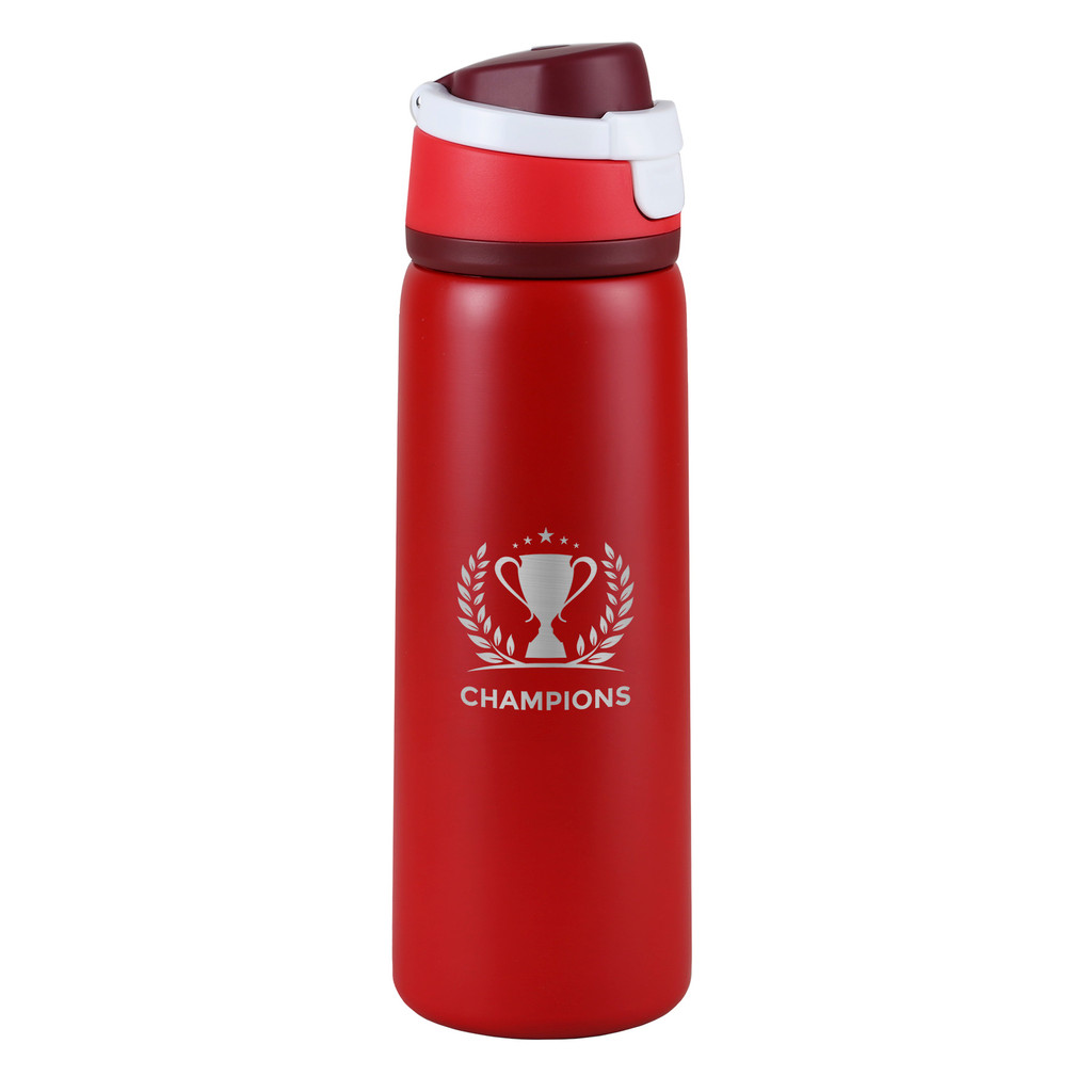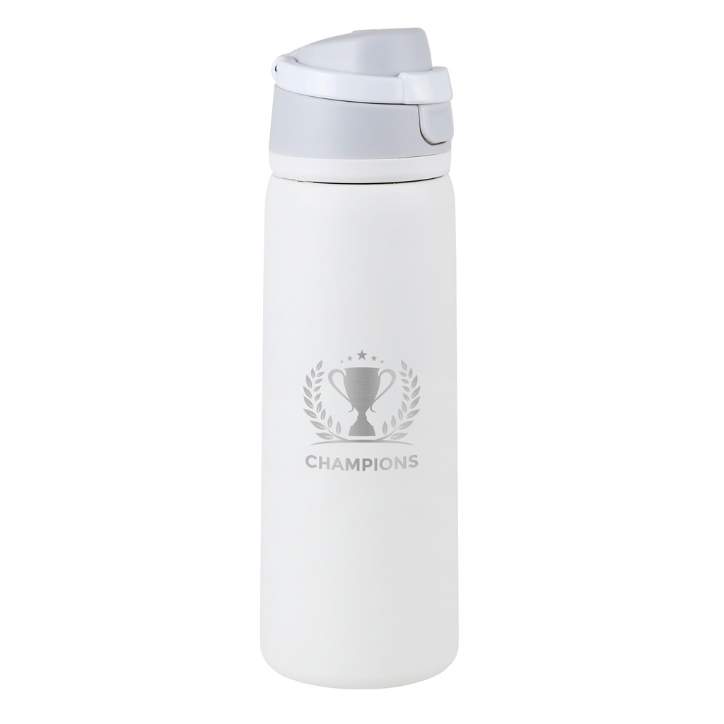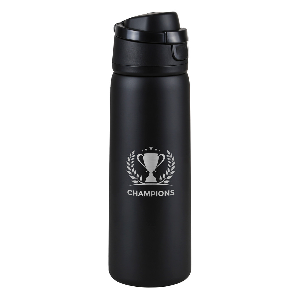 - Recycled stainless steel bottle holds up to 25 oz (750 ml)
